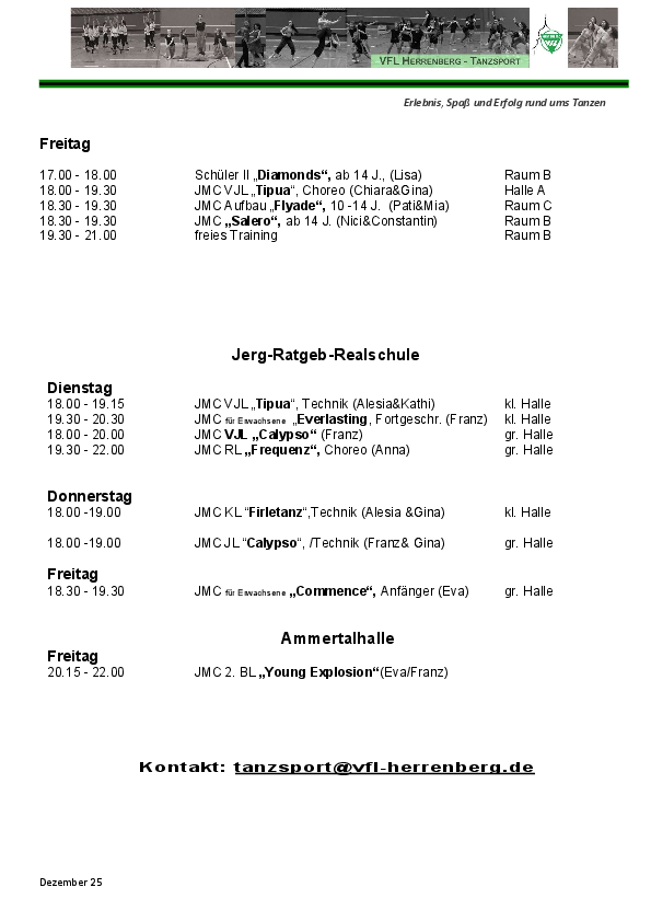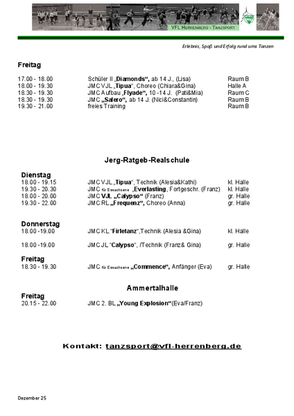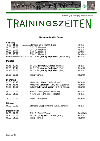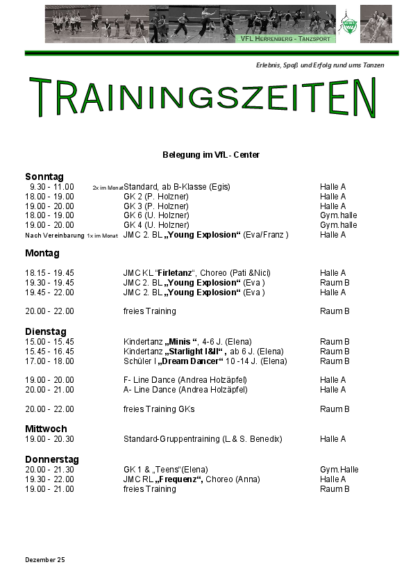 Trainingszeiten im VfL Center 2, Herrenberger Hallen & Umgebung
